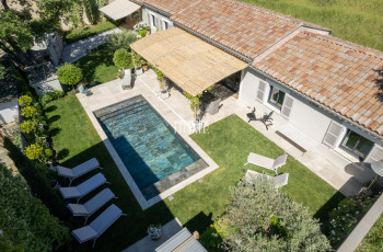 Sans être isolée, la bâtisse est entourée de collines, à l'écart des routes principales, dans un environnement vallonné et bucolique tel qu'on en rêve en Provence.