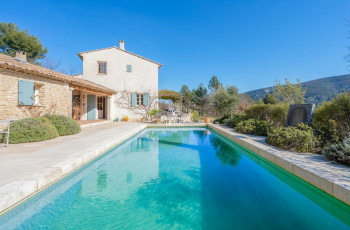 D’inspirations « Maison d’Architecte », la bâtisse de plain-pied offre une surface habitable d'environ 180 m², de grands espaces de vie et des ouvertures permettant de saisir la beauté de l’environnement comme des tableaux d’artistes. Vous apprécierez le confort, l’espace et la convivialité des lieux. L’espace de vie avec sa cuisine ouverte, son séjour / salle à manger sont baignés de lumière. Un bureau / Bibliothèque donne accès à une terrasse tournée vers le Mont Ventoux, comme source d’inspiration.