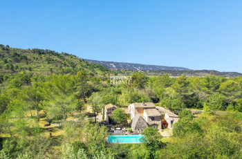 La propriété, à proximité à pied du village, possède un emplacement idéal dans le triangle d'or du Luberon, sur les hauteurs de Bonnieux. Elle offre une vue sur le Luberon et le mont Ventoux.