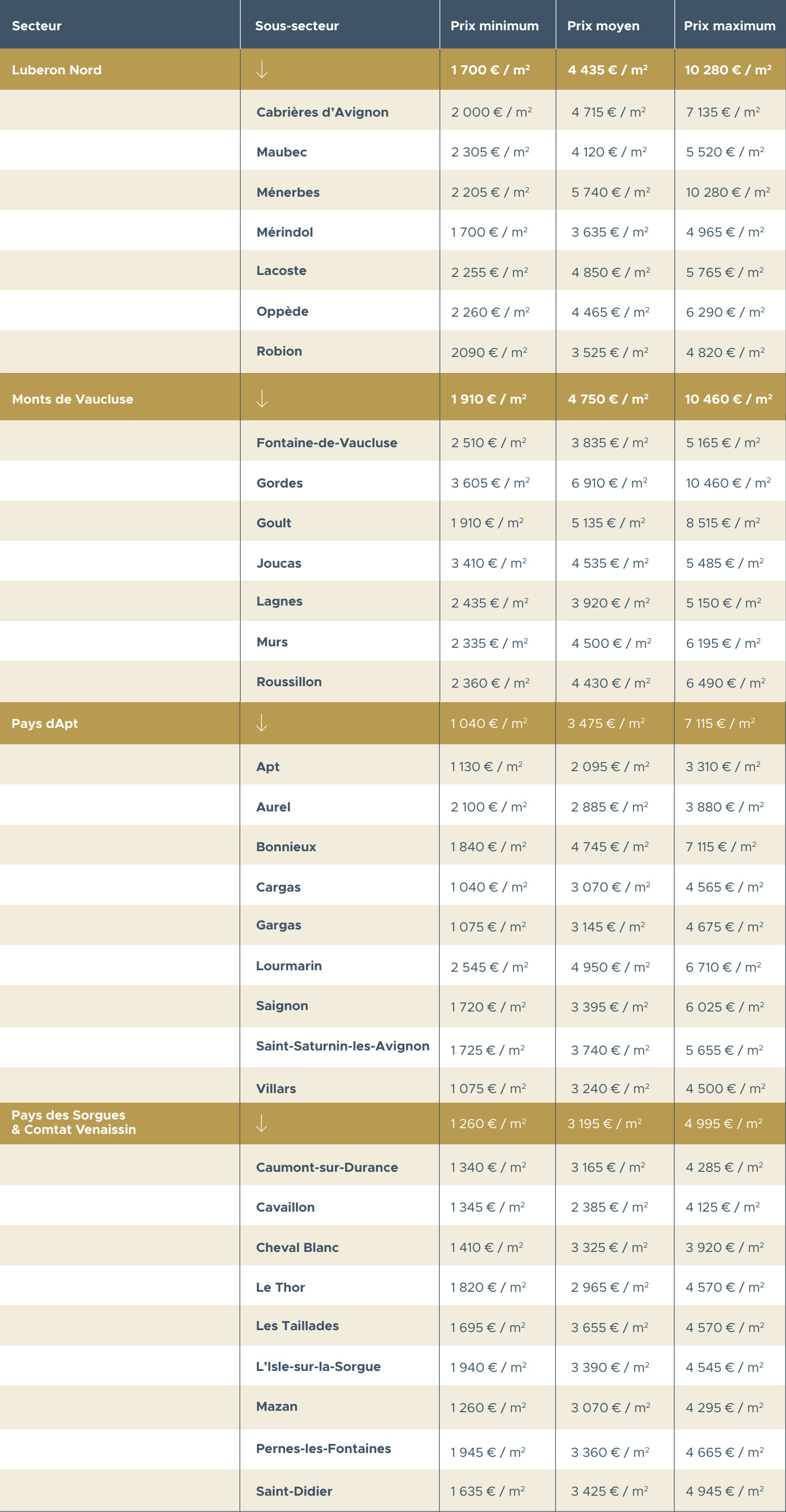 Valuing a property is not limited to a simple average price per square meter. Each house or apartment has unique characteristics that influence its value. Here are the solutions available to you to estimate your property in the Luberon